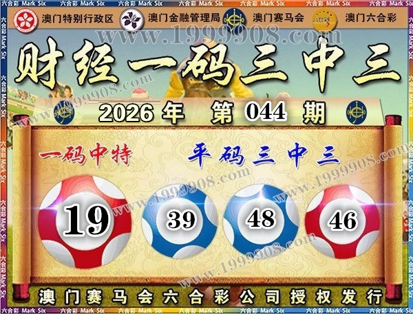 044期开奖结果:46-17-39-47-48-38 特码19