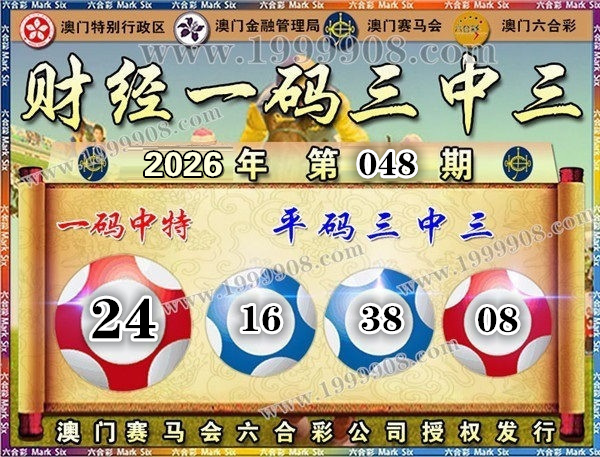 048期开奖结果:08-38-29-32-46-16 特码24