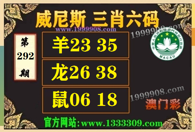 292期:(威尼斯三肖六码【羊23.35、龙26.38、鼠06.18