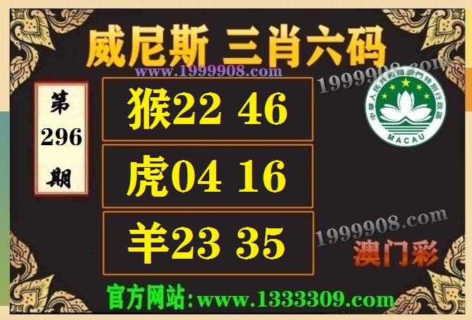 296期:(威尼斯三肖六码【猴22.46、虎04.16、羊23.35