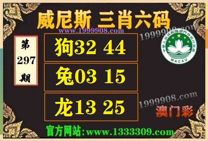 297期:(威尼斯三肖六码【狗32.44、兔03.15、龙13.25
