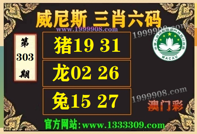 303期:(威尼斯三肖六码【猪19.31、龙02.26、兔15.27