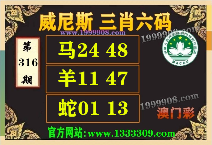 316期:(威尼斯三肖六码【马24.48、羊11.47、蛇01.13