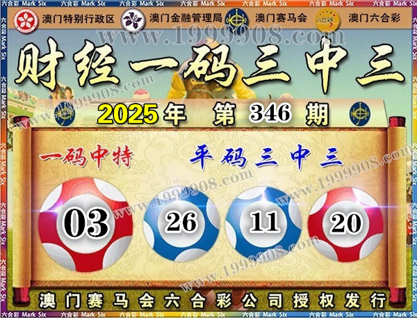 346期开奖结果:11-26-40-46-34-20 特码03