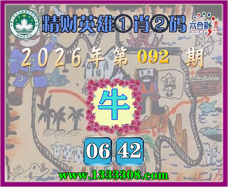 092期:【精财英雄】 🥖①肖②码🥖【】【06.42】开:牛06